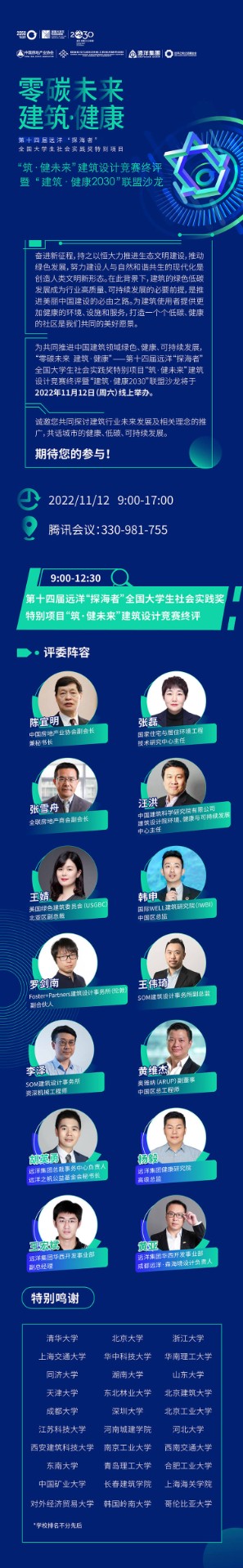 预告|11月12日,“筑·健未来”建筑设计竞赛终评暨“建筑·健康2030”联盟沙龙重磅来袭!